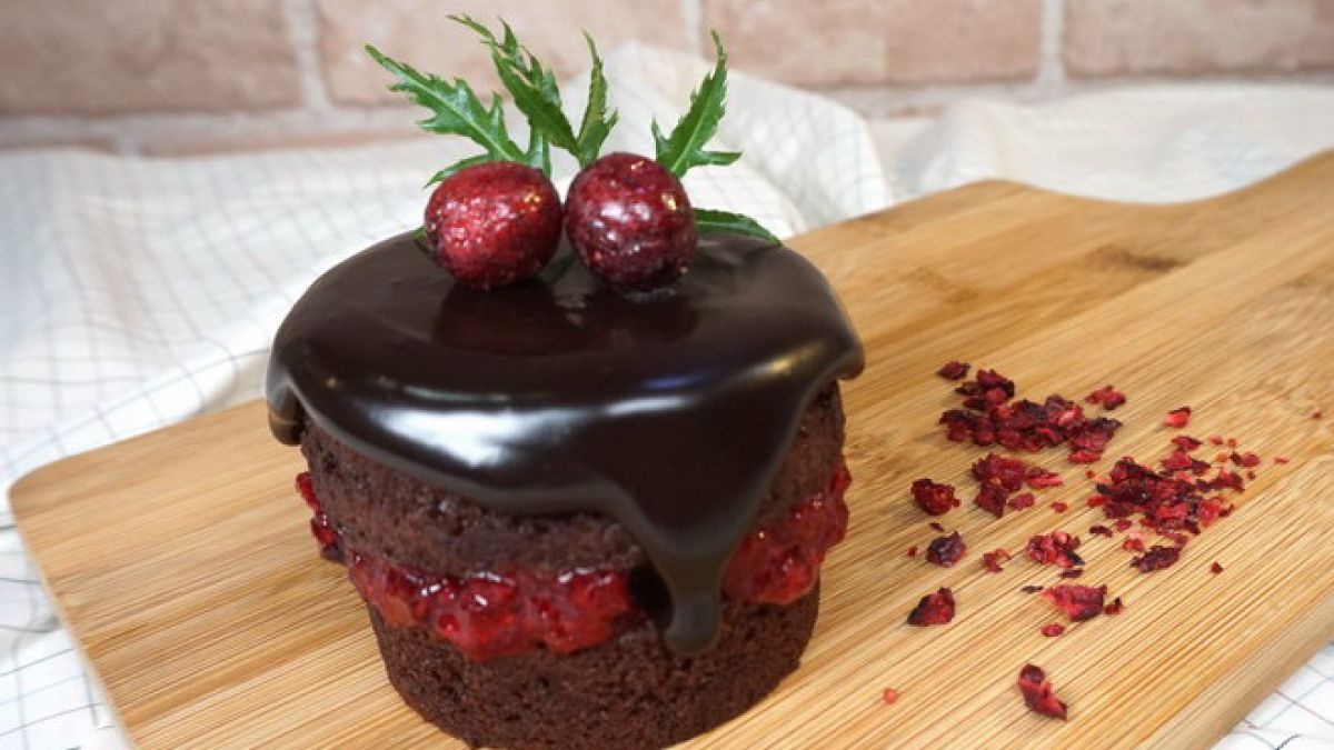柔軟的巧克力蛋糕做為主體,以酸甜蔓越莓果醬做為夾心內餡,最後淋上濃香巧克力醬。一口咬下,微酸的蔓越莓中和巧克力的甜膩,完美結合平衡了味蕾。仔細品嚐,咀嚼的到甜酸蔓越莓的果實口感,是午茶專屬的幸福滋味!