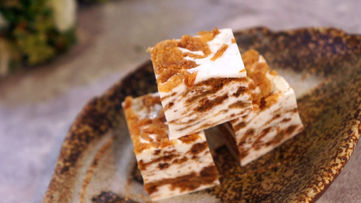 潮流感十足的千層虎紋牛軋,卻有著傳統古早味,樸實的鹹香肉脯,搭配牛軋糖,鹹甜交織,佐以爽口香酥洋蔥脆片,好吃又涮嘴。融化在嘴中濃厚的復古風,回憶湧上心頭,叫人怎麼能不愛上這樸實而美味無限的搭配。一起憶青春,尋回純真的初心。祈求一整年,虎虎生風(虎紋)、洋洋得意(洋蔥)、諸事大吉(肉脯絲)。