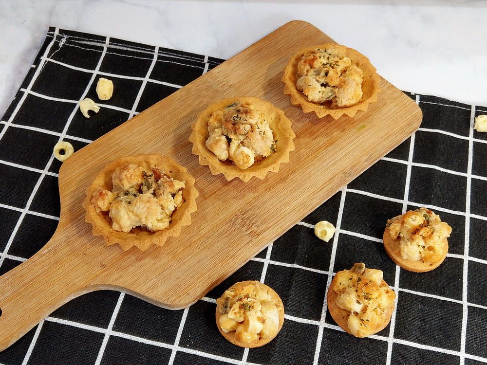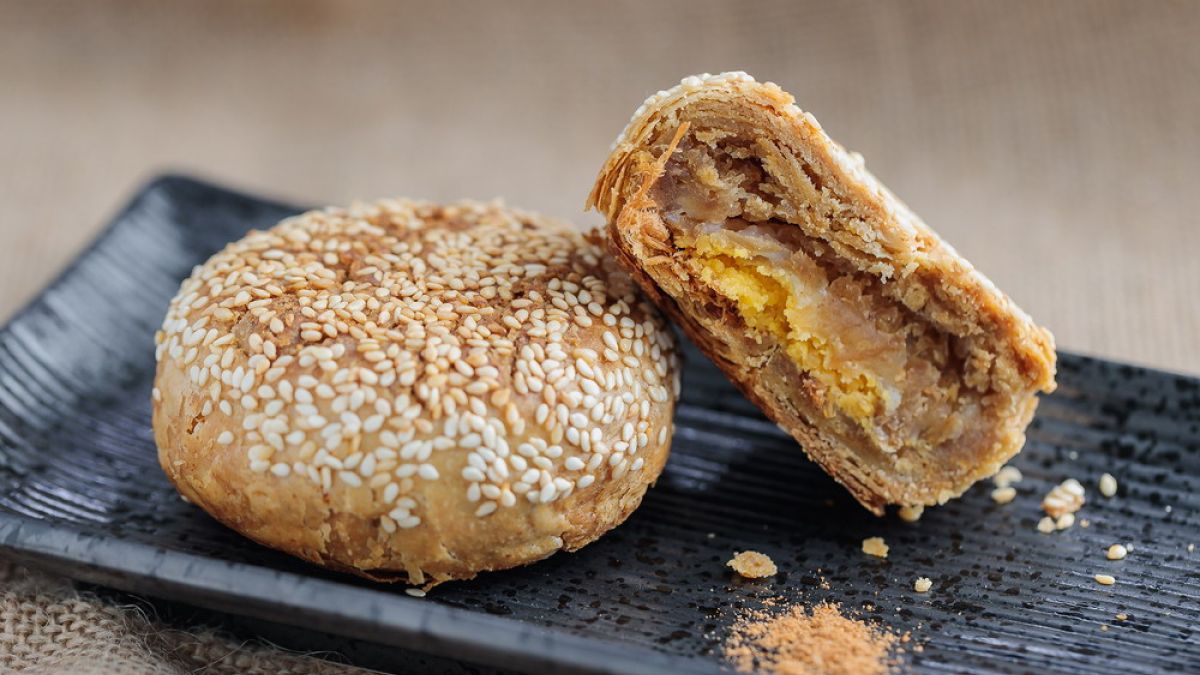 本食譜份量:25顆。烤焙酥脆的中式酥餅,搭配經典鹹蛋黃及肉脯內餡,再加上軟Q的麻糬,外酥裡嫩的多重口感讓人陶醉,白芝麻香氣與內餡香氣互相交融,酥香滋味讓人難以抗拒。開發五大方向:可常溫保存、成品效期較長、可使用機器大量製作、可視需求調整風味、多層風味口感配搭。◣ 本食譜由 張伊豐師傅 開發設計