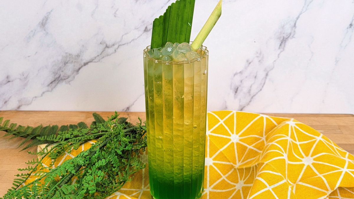 1. 將斑蘭葉風味糖漿與檸檬汁倒入杯中