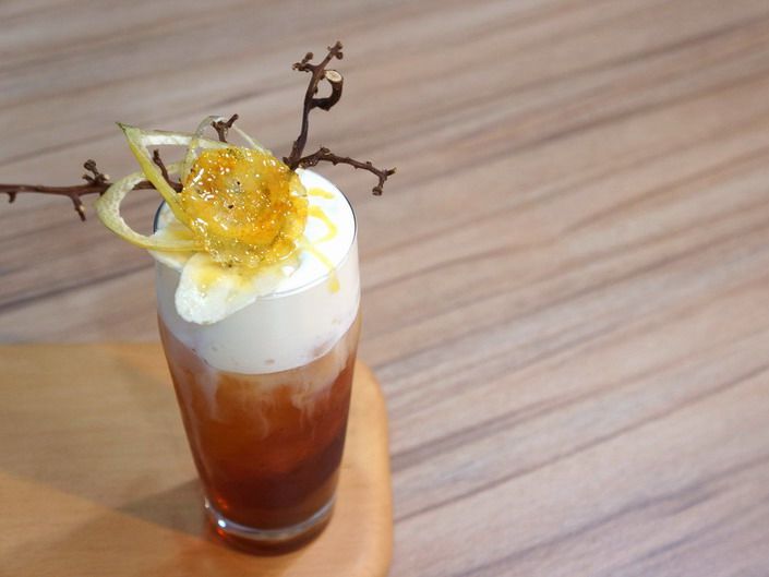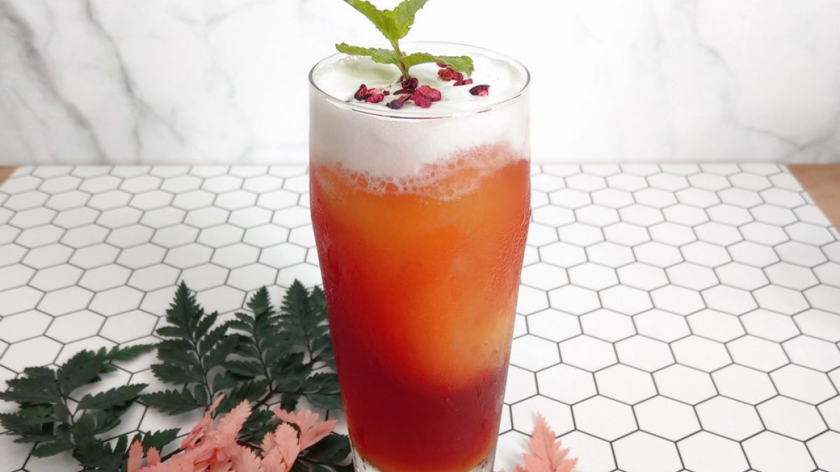 黃昏之時,我們肩併著肩,聊著過往的經歷和故事。玻璃杯裡漸層般的紅橙色澤映著日落的天空,相當迷人。酸甜的美好滋味,艷麗鮮明的色彩,此時此刻,只希望時間能永遠停在這。