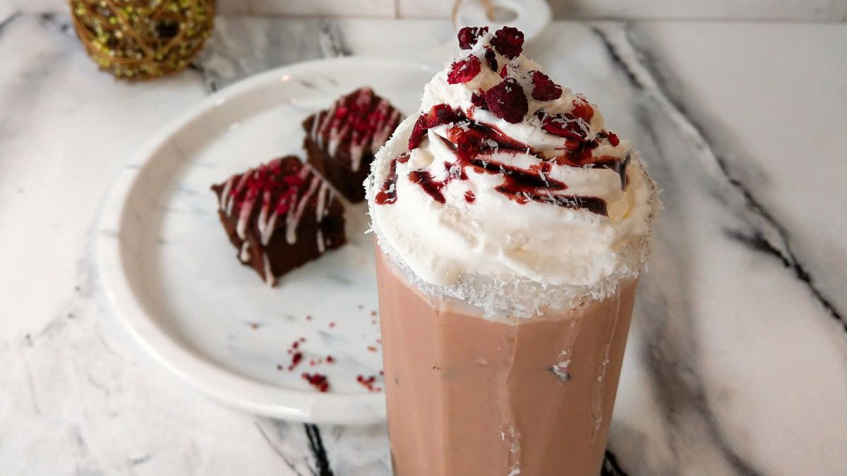 廣受歡迎的世界潮流飲品─奶茶,調和帶有莓果酸甜及醇香可可滋味的紅絲絨糖醬。自然呈現出美麗的紫紅色調,搭配上一點簡單的裝飾,成就飲品的好顏值。