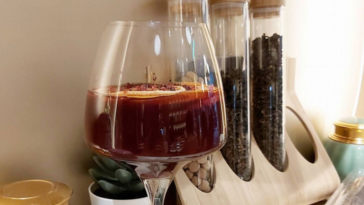 以桑格利亞水果熱紅酒為概念,利用多種香料及果乾調製而成。美麗深邃的酒紅色,散發出成熟女性的知性美。多層次的風味,讓人一喝就沉醉在其中。◣ 本食譜由 瞿維新Shin Chiu老師 開發設計
