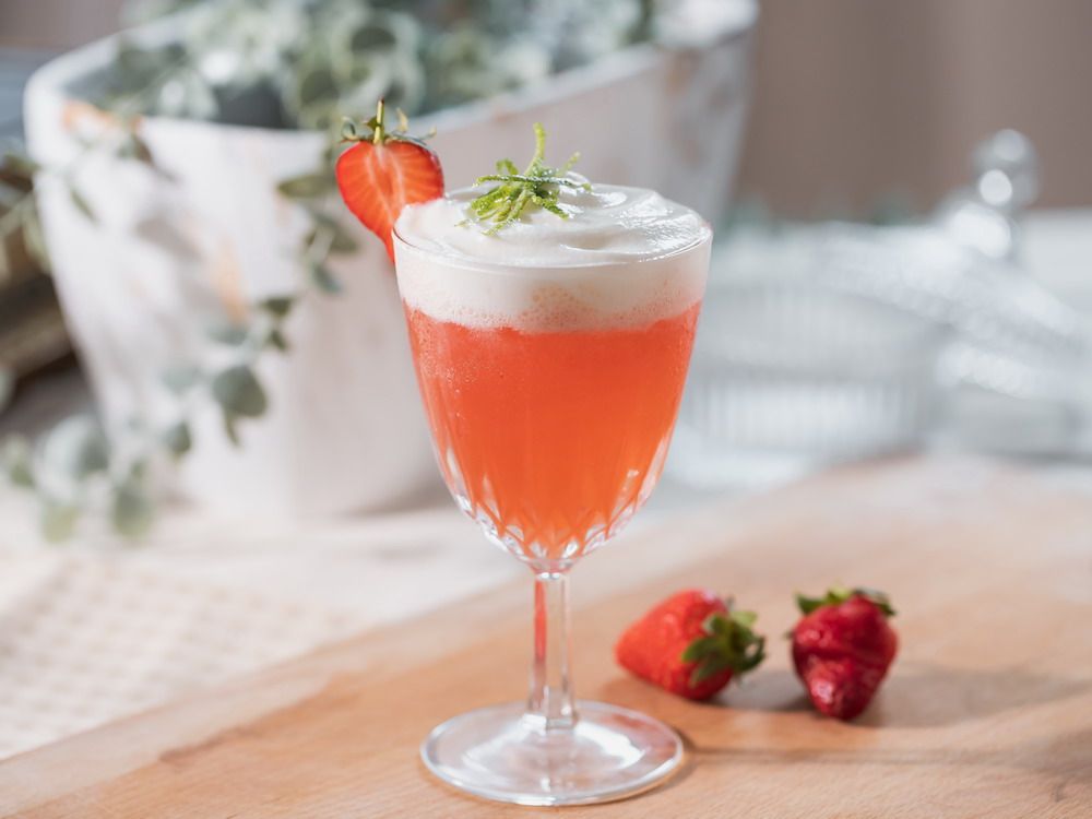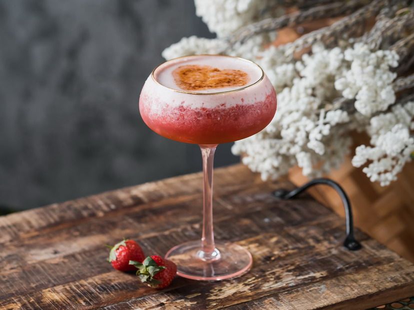 2. 搖酒器中倒入【步驟1】飲品,加入冰塊搖勻,倒入成品杯