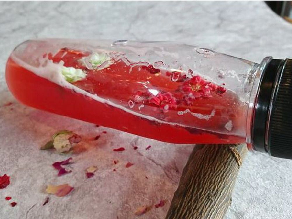 甜香乳酸菌飲料加入酸溜葡萄柚汁,並撒上A.Ta沙漠湖鹽,