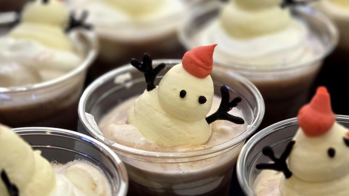 以濃郁的蘭姆可可為基底,融合柑橘奶油,入口溫潤而富有驚喜。最特別的是漂浮其上的可愛雪人,以鮮奶油打造俏皮造型,帽子、眼睛都細緻可愛,不僅是飲品,更是冬日裡的療癒小驚喜。無論拍照打卡或暖心分享,都能瞬間營造滿滿節慶氛圍。