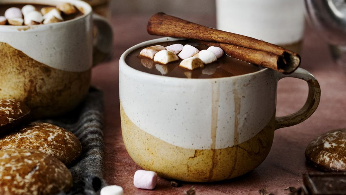 1. 溫杯後,倒入麥芽威士忌風味漿及濃情可可調味粉
