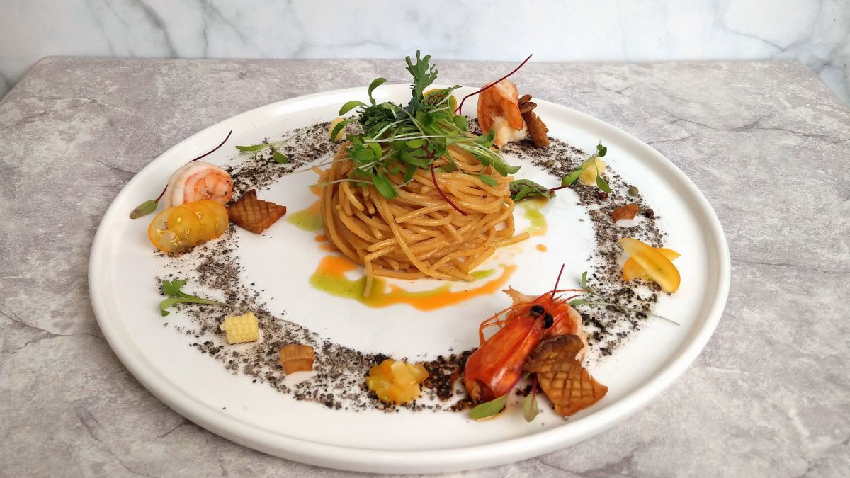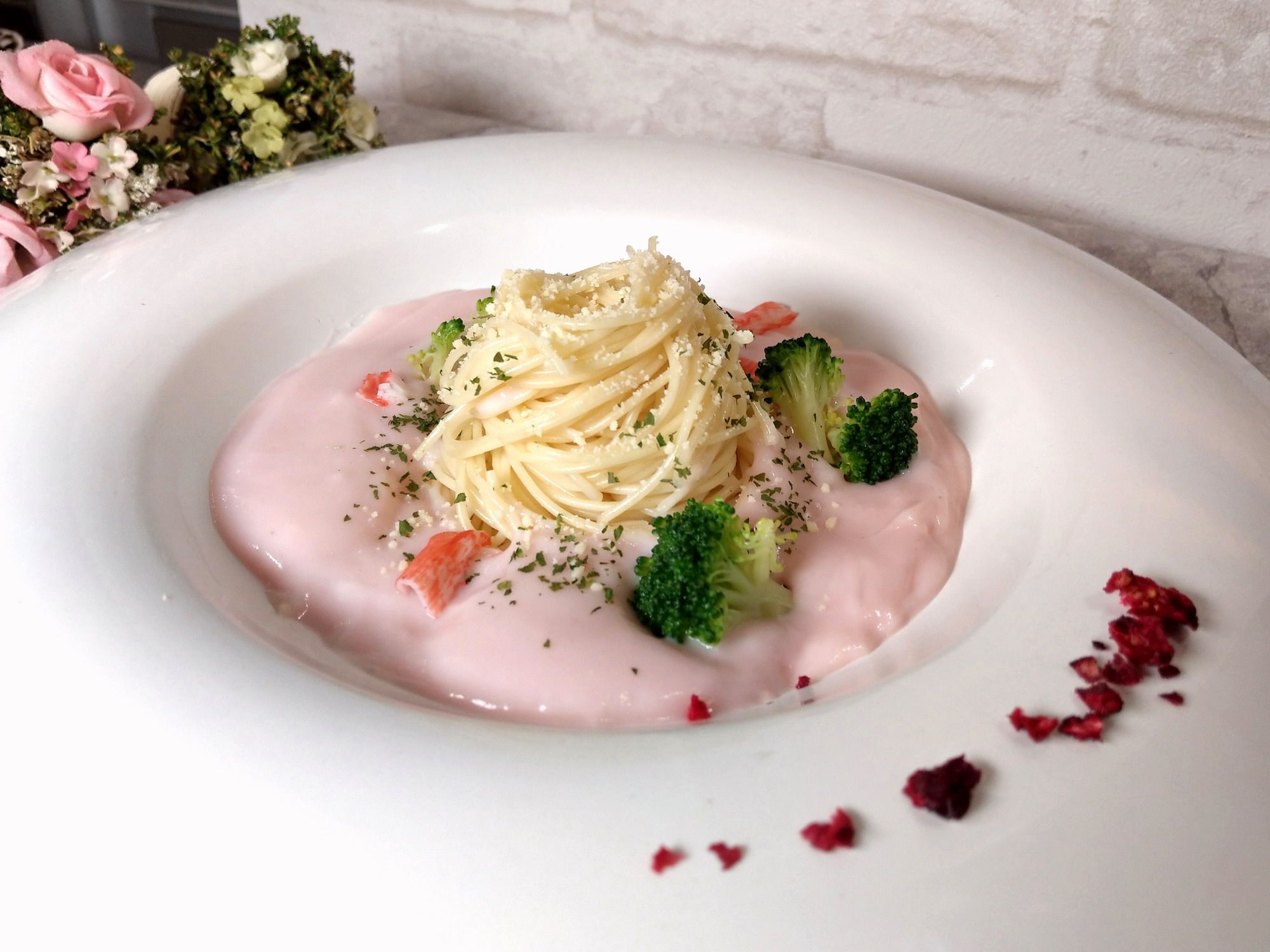 南洋叻沙風味,口味鮮鹹、椰香濃郁,搭配海鮮食材製做成鮮蝦義大利麵,鹹香微辣有味,讓人讚美不絕。除了蝦子外,也可依照個人口味更換主食材,或增添少許花生醬、乾辣椒…等食材變化口味。