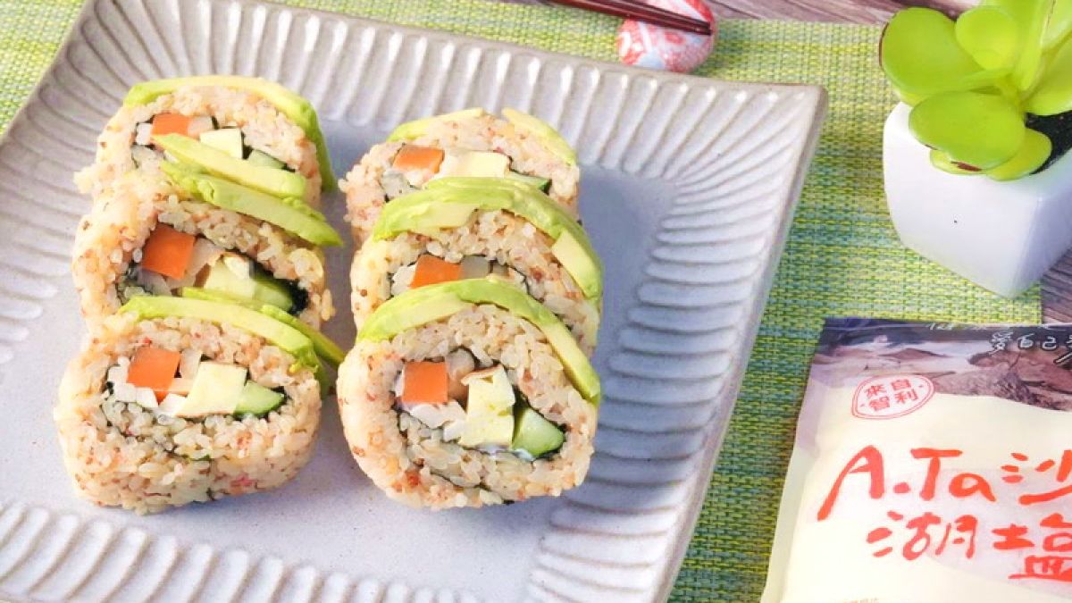 世界正捲起一陣蔬食風,跟上這股熱潮,把當季旬味蔬食與紅藜麥結合再一起製成輕爽壽司捲,再加入森林奶油-酪梨,讓口感更加順口。採用天然少鈉A.Ta沙漠湖鹽,讓壽司捲吃來更沒有負擔,是一道適合全家人享用的美味輕主食。